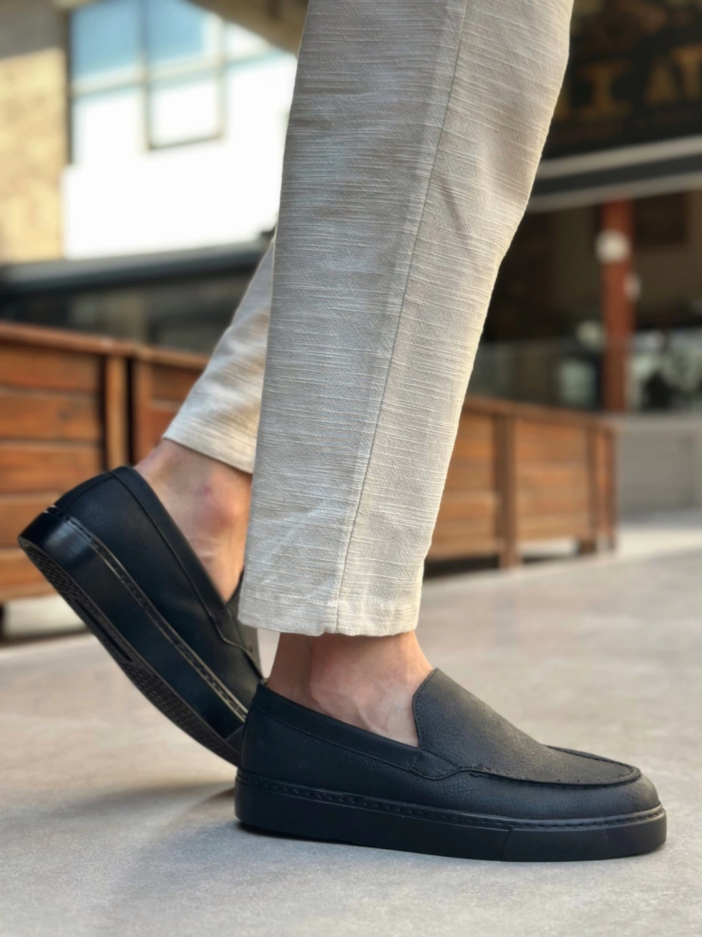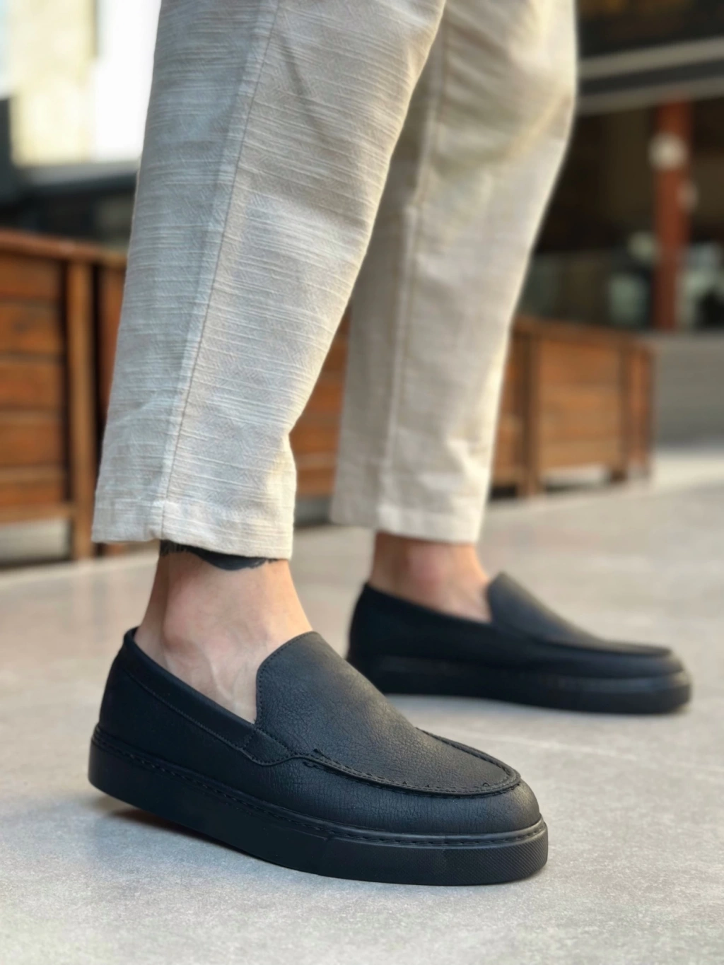 BA0339 Bağcıksız Kadife Siyah Siyah Taban Günlük Erkek Ayakkabı