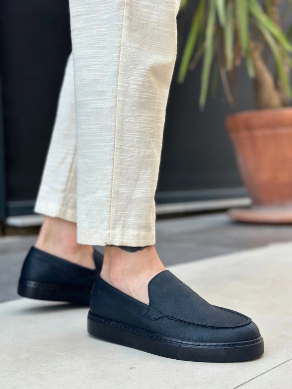 BA0339 Bağcıksız Kadife Siyah Beyaz Taban Günlük Erkek Ayakkabı