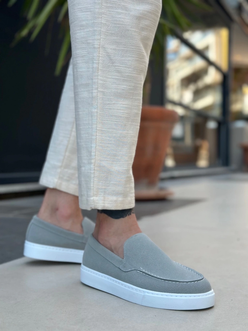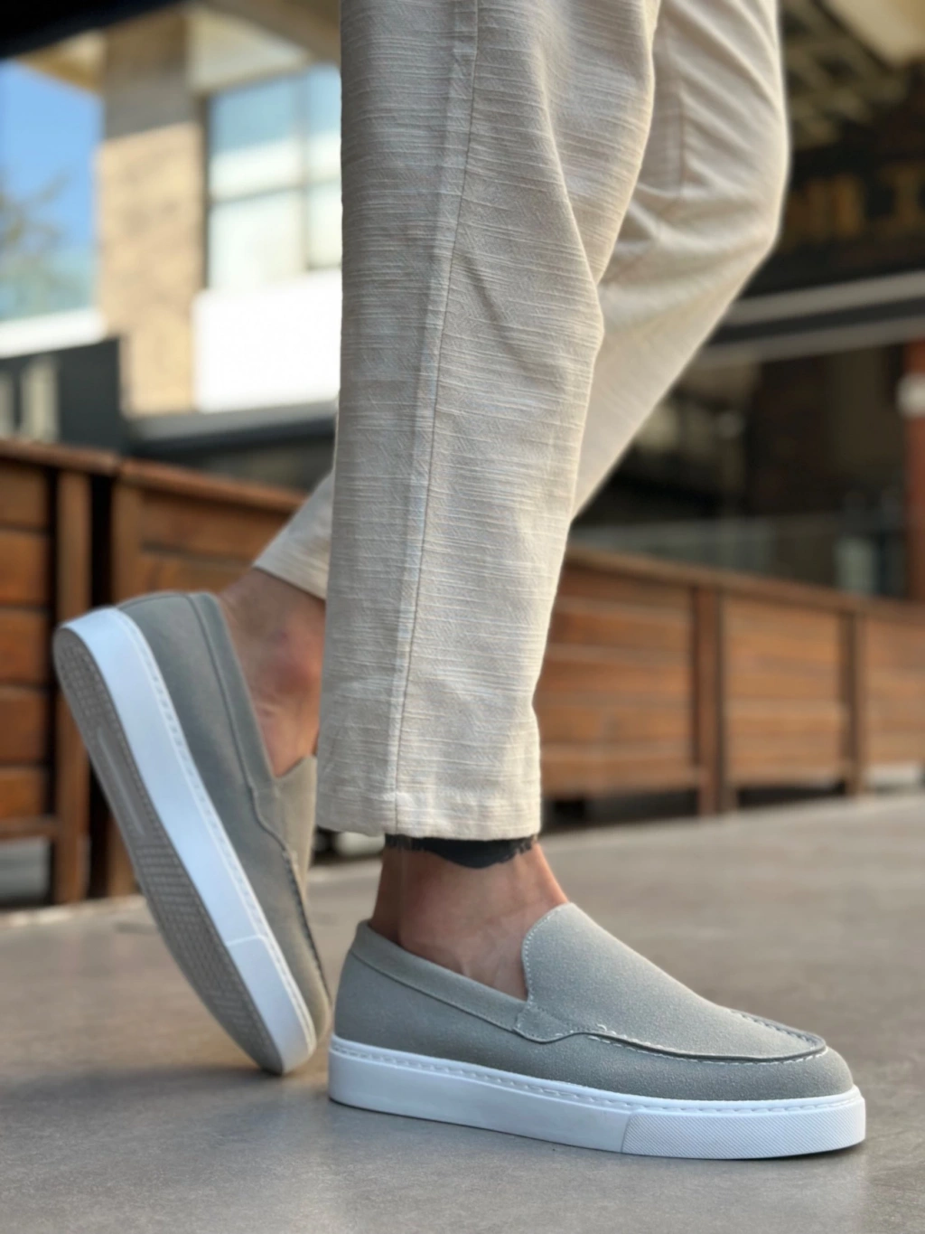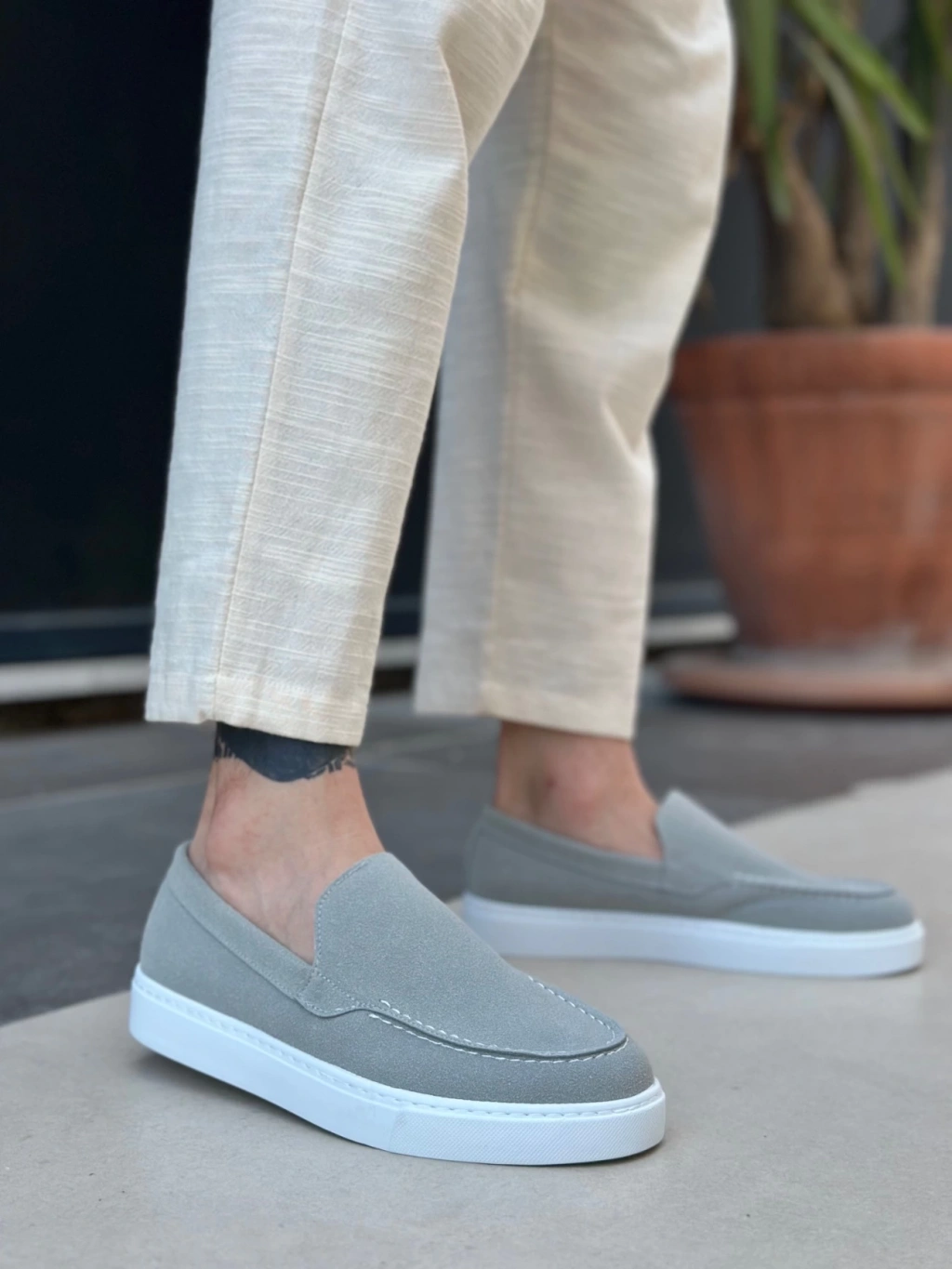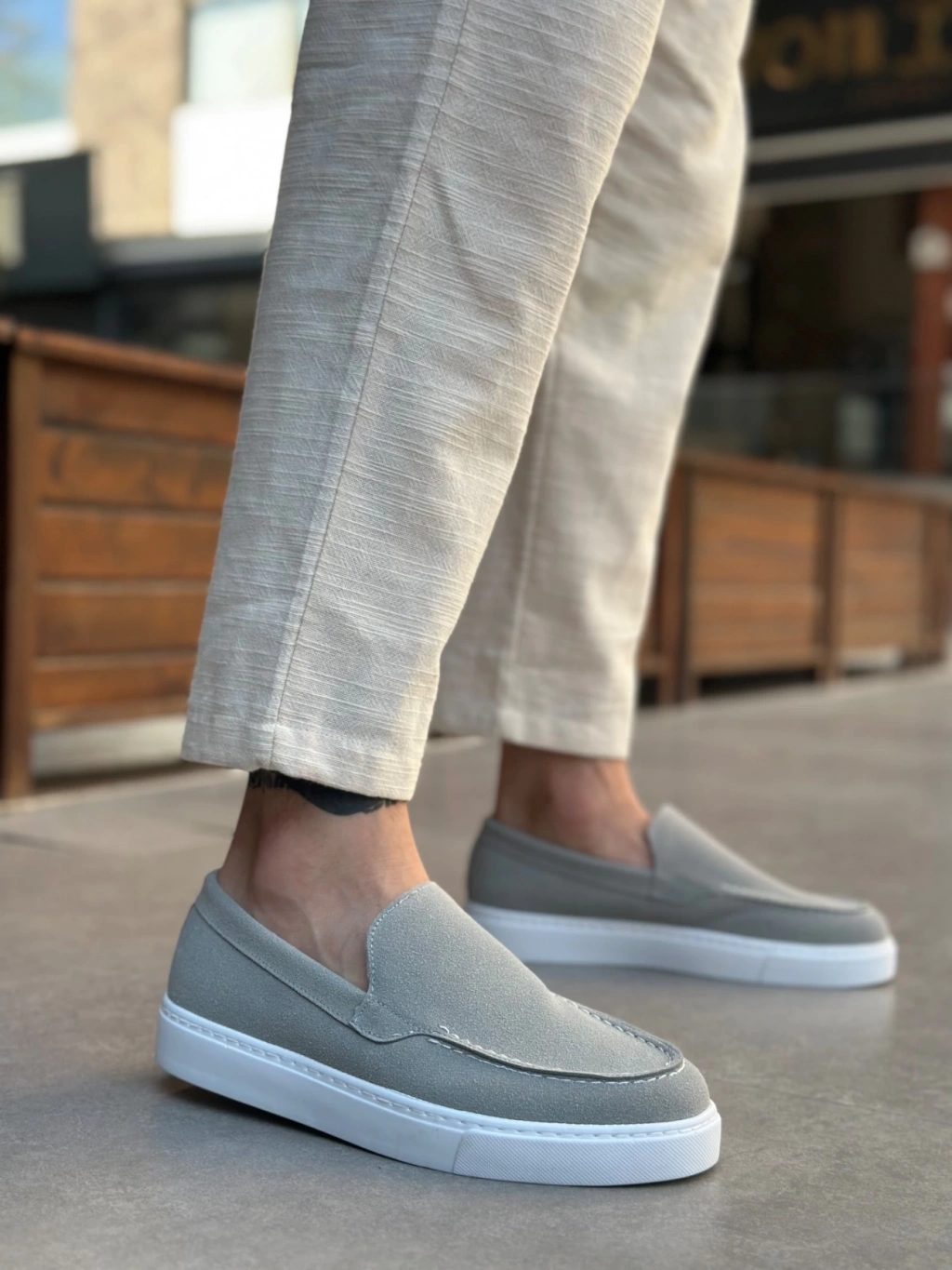 BA0339 Bağcıksız Kadife Gri Beyaz Taban Günlük Erkek Ayakkabı