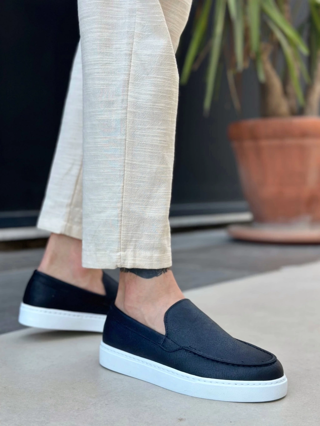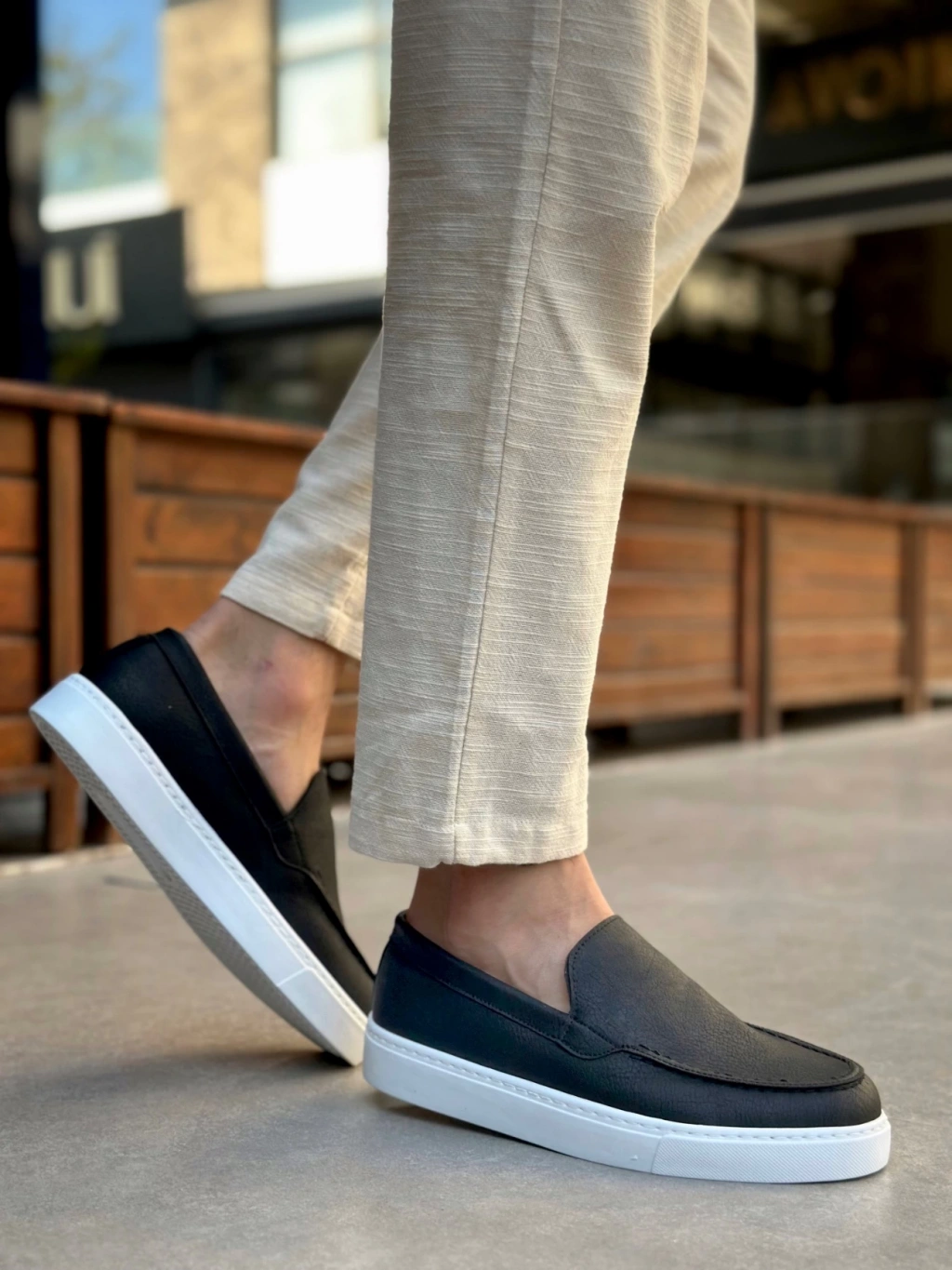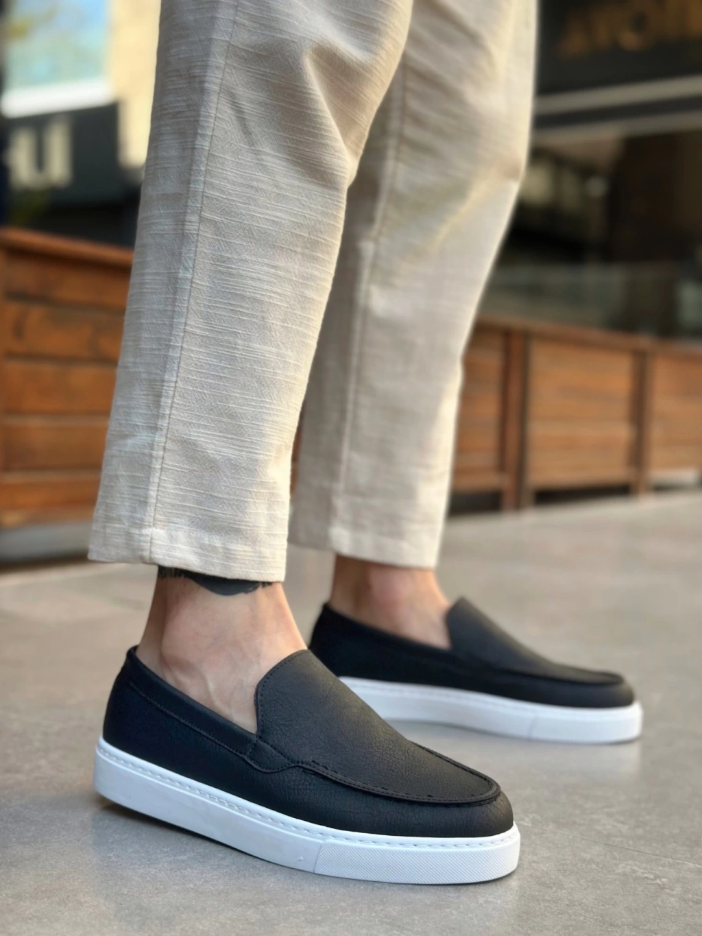 BA0339 Bağcıksız Kadife Siyah Beyaz Taban Günlük Erkek Ayakkabı