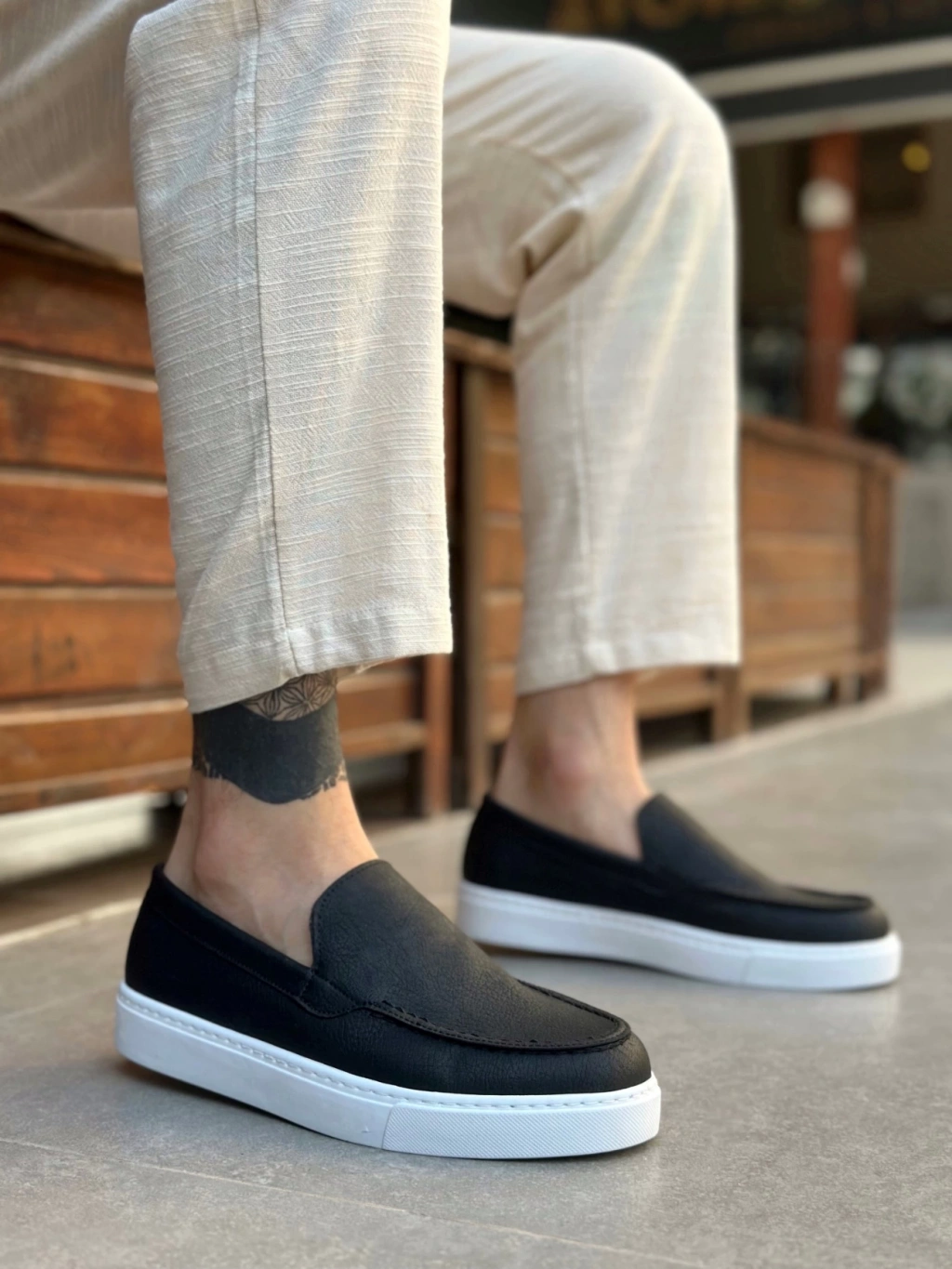 Ba0241 Bağcıksız Yüksek Taban Siyah Beyaz Taban Cilt Erkek Ayakkabı