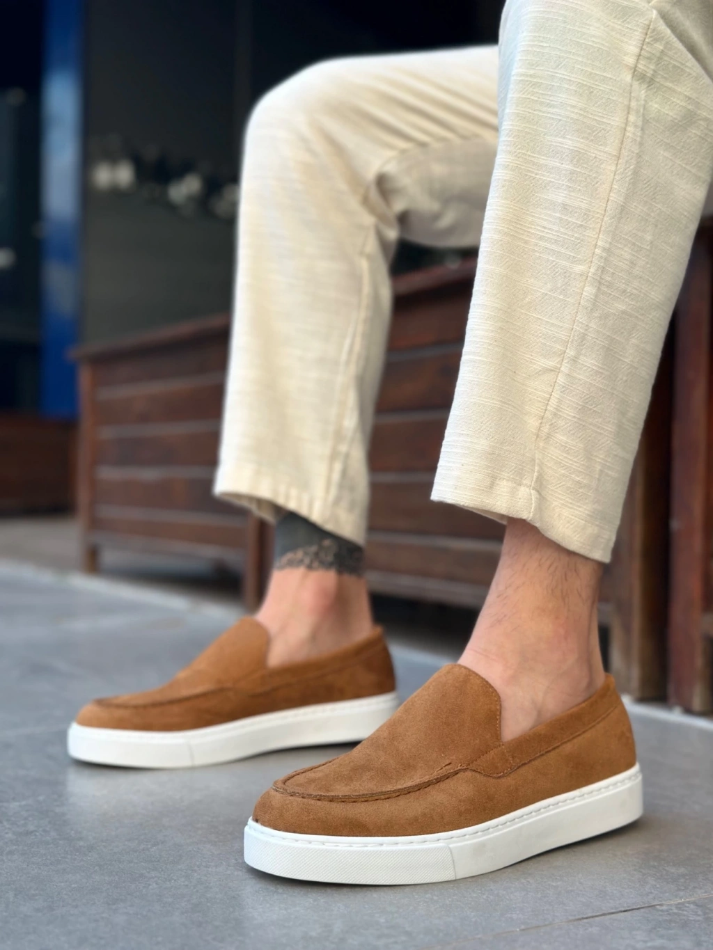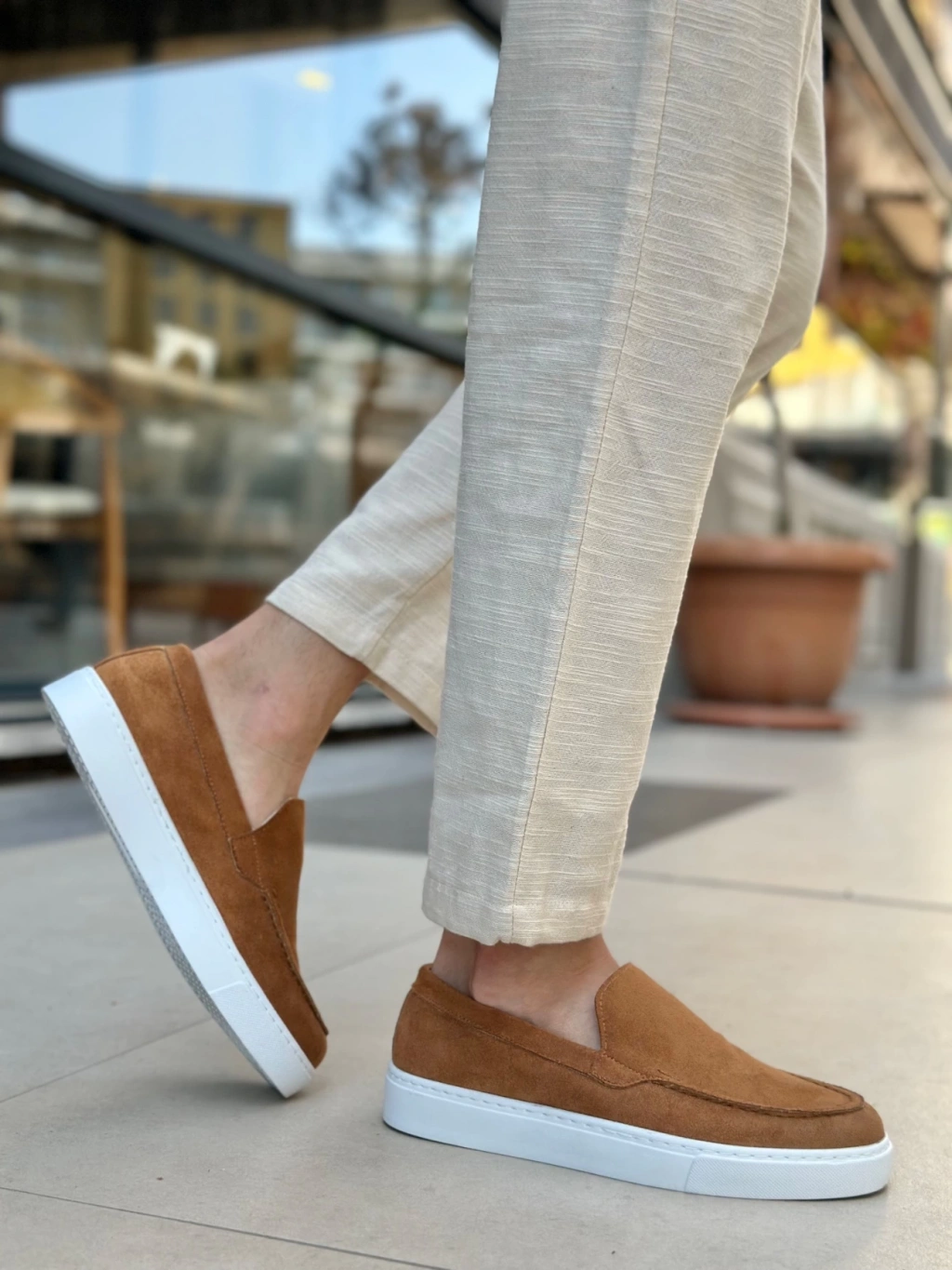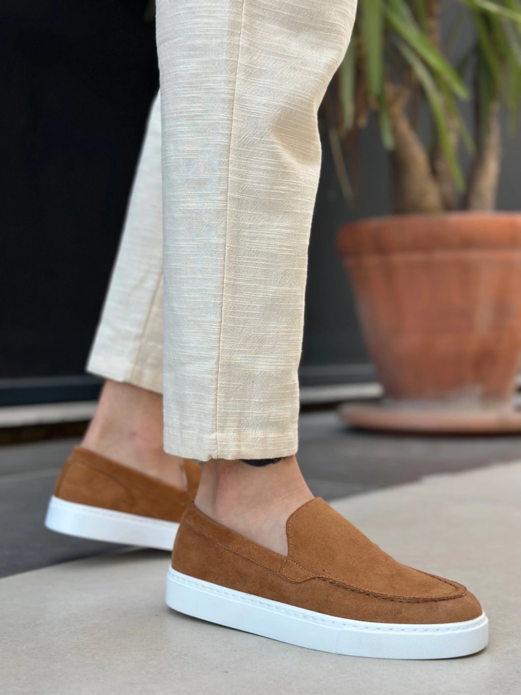 BA0339 Bağcıksız Kadife Kahverengi Beyaz Taban Günlük Erkek Ayakkabı