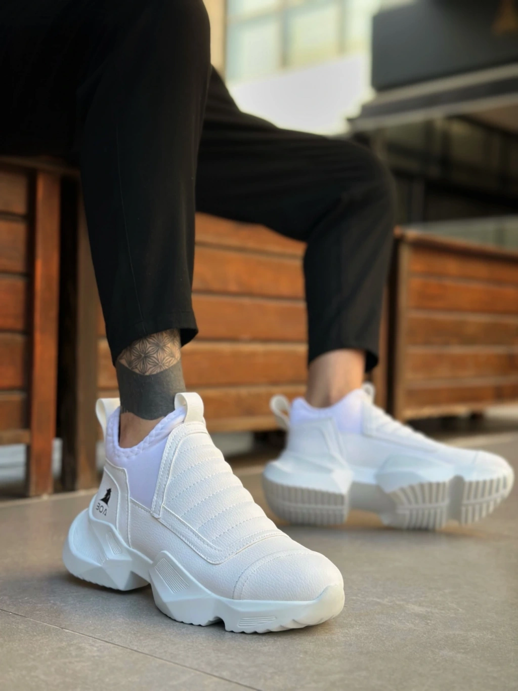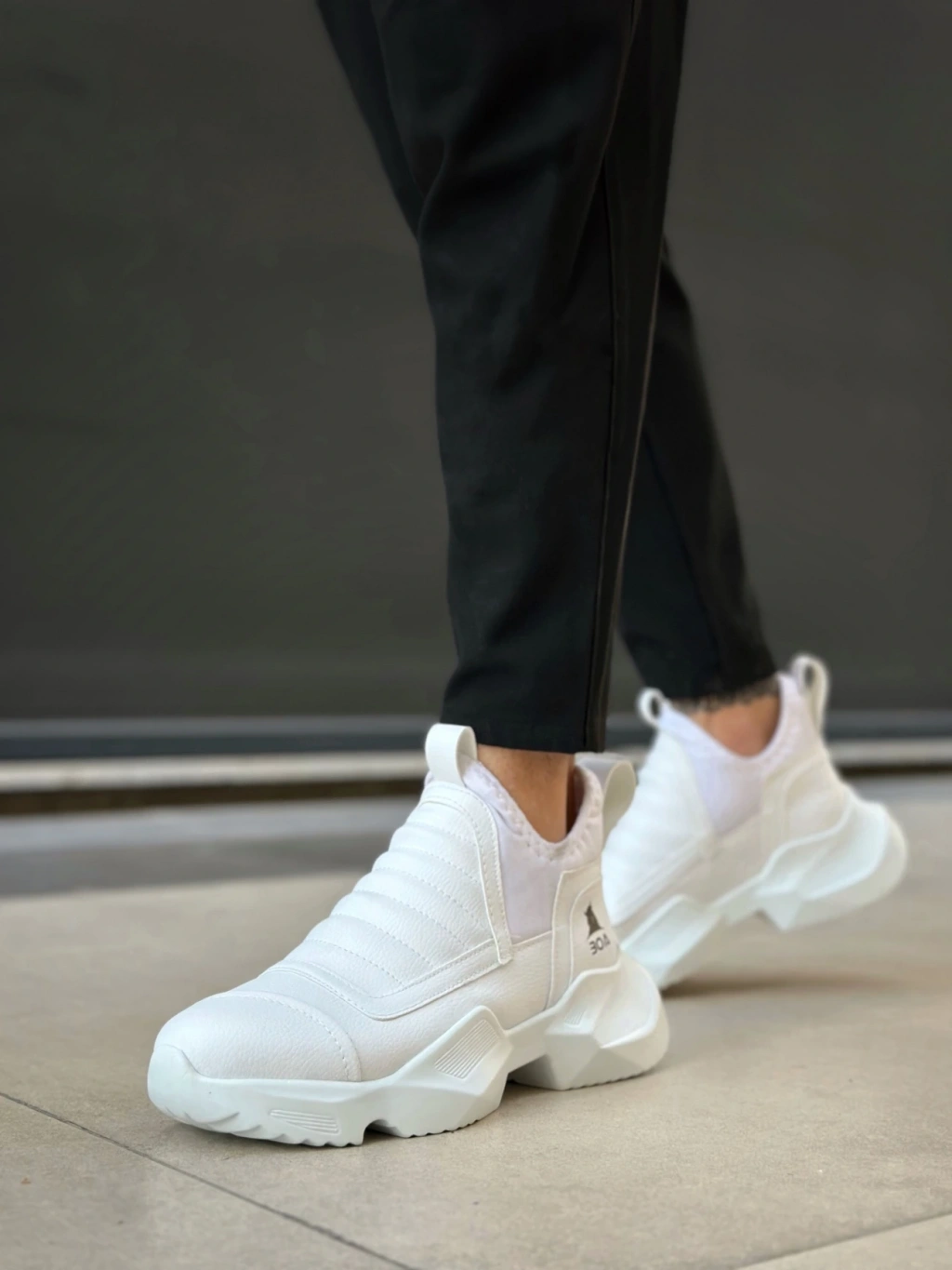 Ba0401 Bağcıksız Rahat Kalın Taban Beyaz Erkek Spor Yarım Bilek Bot
