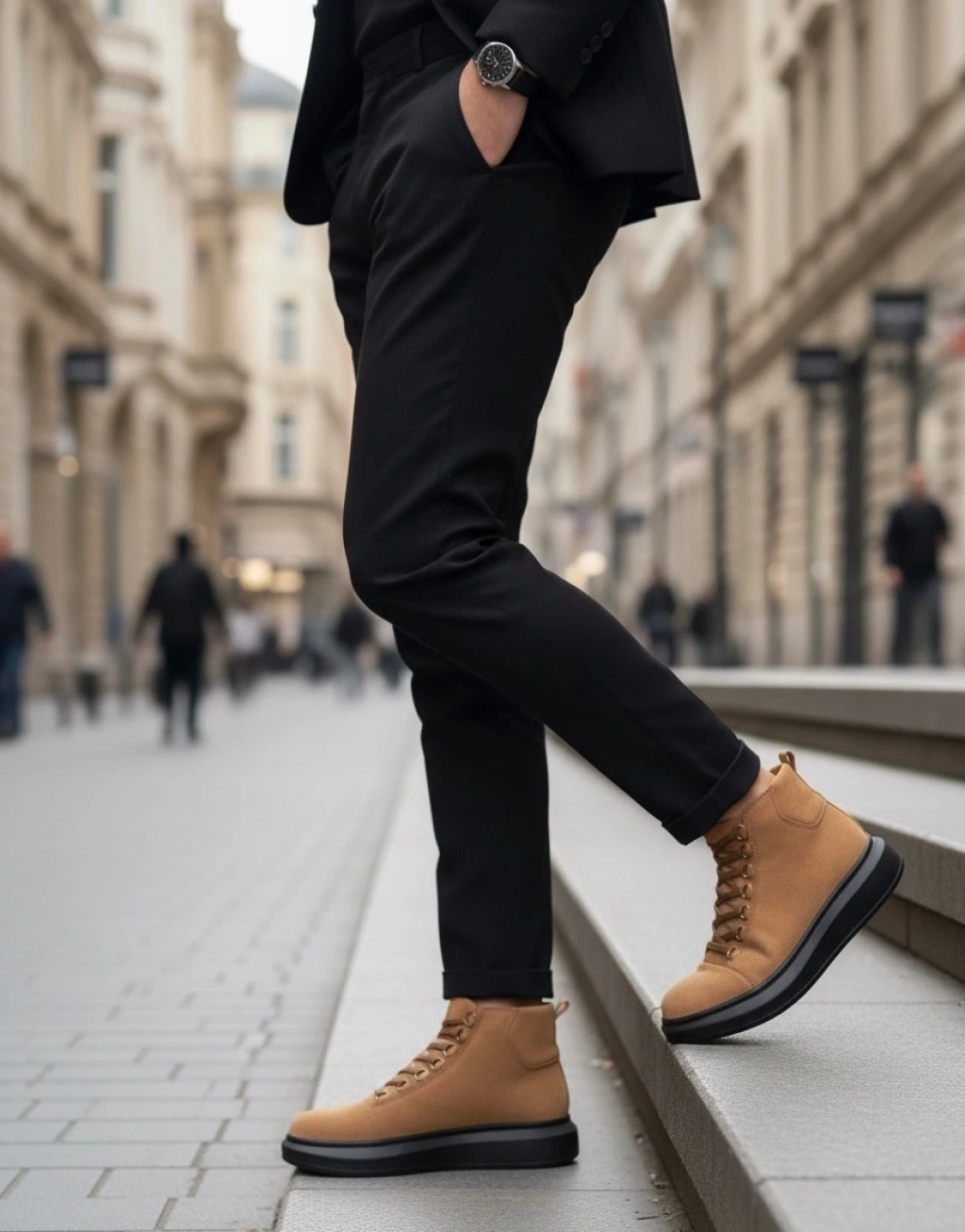 Ba0713 Bağcıklı Yüksek Taba Süet Siyah Taban Erkek Tarz Spor Bot