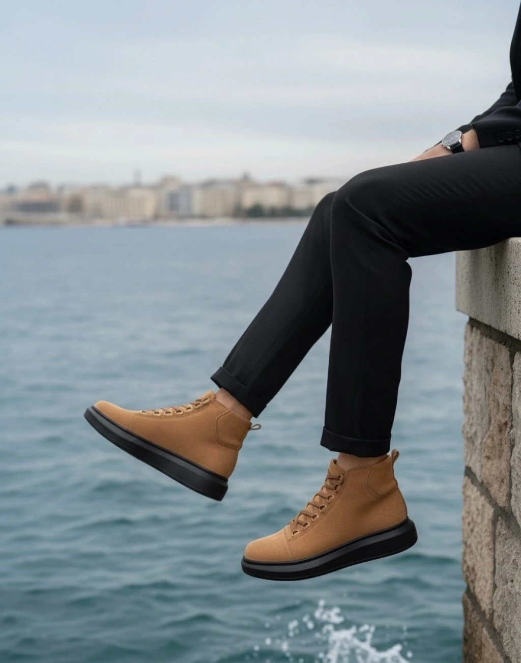 BA0713 Bağcıklı Yüksek Siyah Taban Erkek Tarz Spor Bot