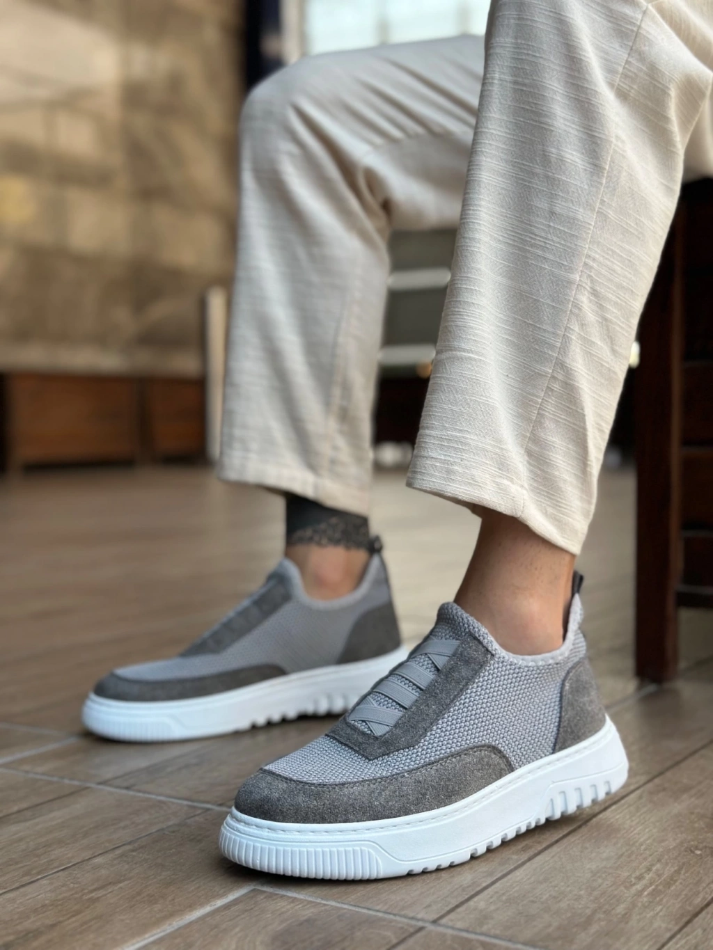Ba0911 Özel Örme Triko Deri Tozu Detaylı Gri Günlük Spor Ayakkabı