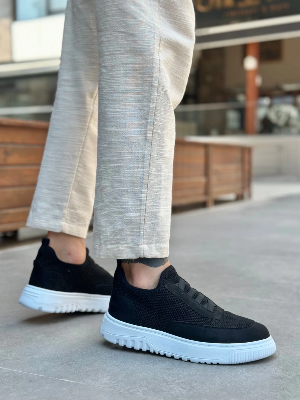 KB-BX1 Siyah Cilt Yüksek Beyaz Taban Günlük Erkek Ayakkabı