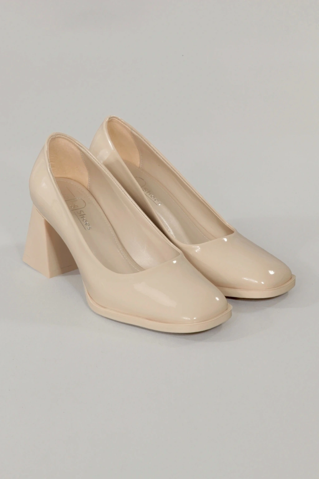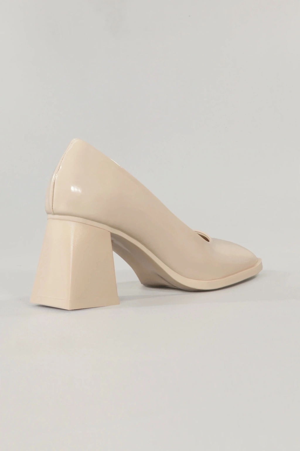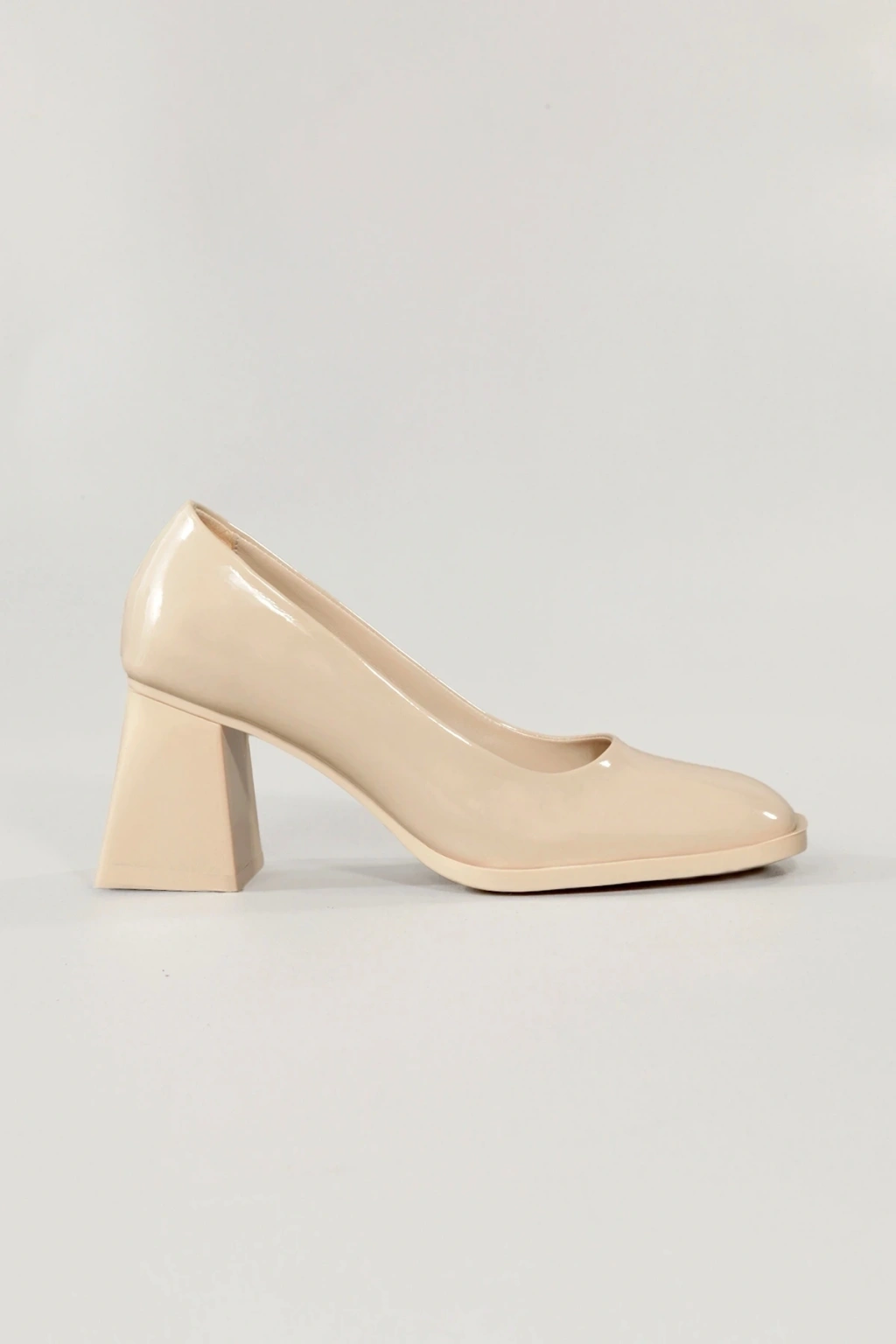 Kadın Bej Rugan Topuklu Ayakkabı Kare Burun Tpu Taban Kbejr100