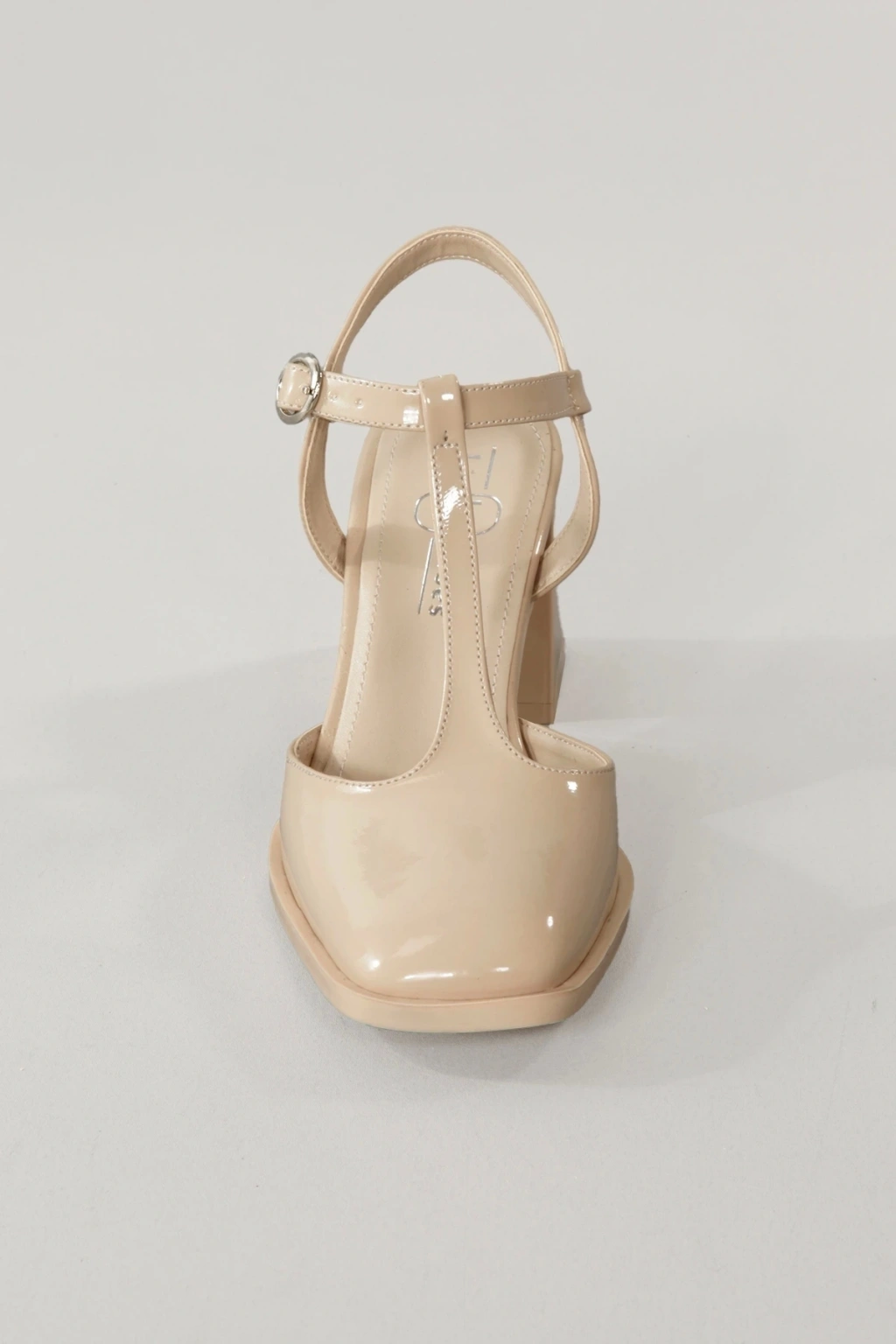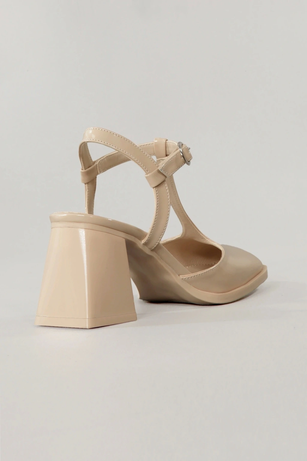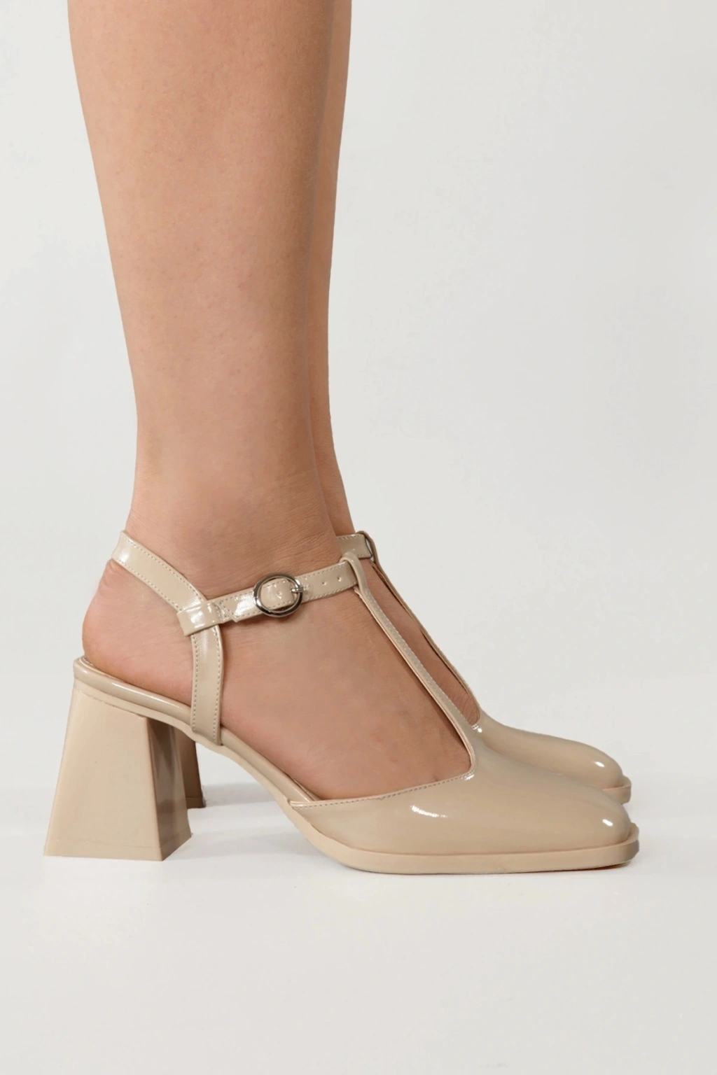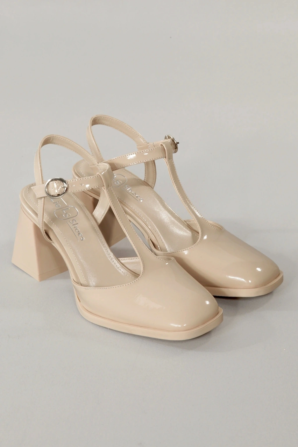 Kadın Bej Rugan Topuklu Ayakkabı Kare Burun Tpu Taban Kbejr106