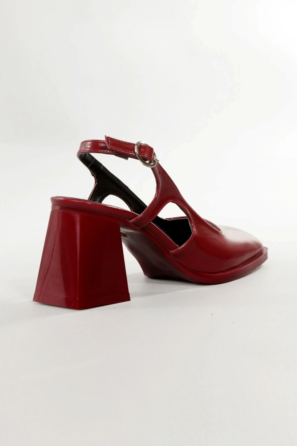 Kadın Bordo Rugan Topuklu Ayakkabı Kare Burun TPU Taban