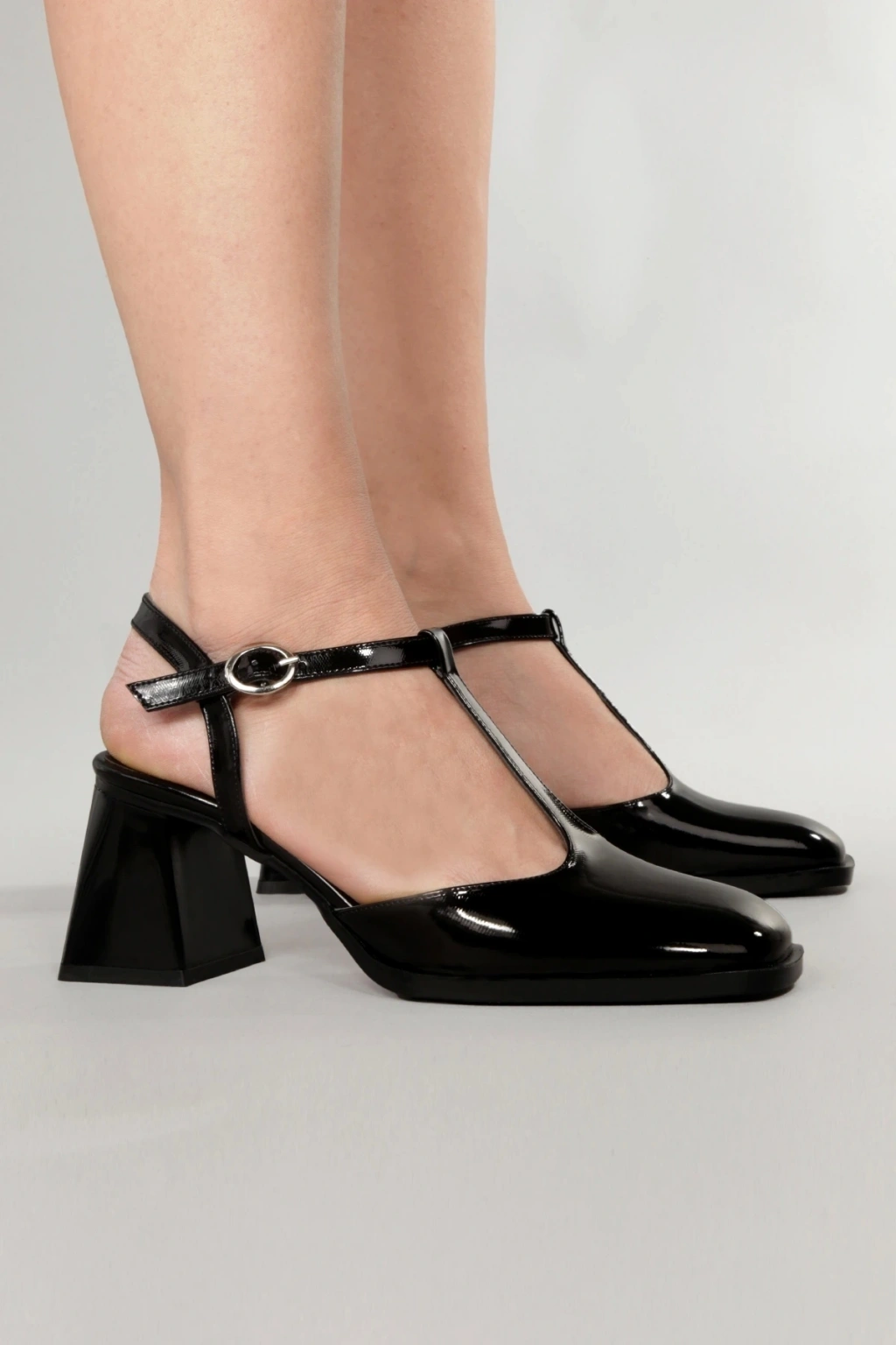 Kadın Siyah Rugan Topuklu Ayakkabı Kare Burun Tpu Taban Ksyhr106