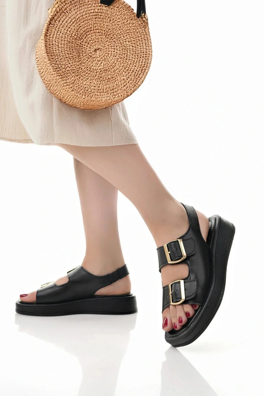 - Rahat ve şık tasarımıyla günlük kullanım için ideal, bej renkli kadın sandalet.; - Çift tokalı yapısı sayesinde kolayca ayarlanabilir ve mükemmel uyum sağlar.; - Ortopedik taban desteği ile ayak sağlığınızı ön planda tutar ve gün boyu konfor sunar.; - Sandalet, hem şıklığı hem de rahatlığı bir arada sunarak her türlü günlük aktiviteye eşlik eder.;