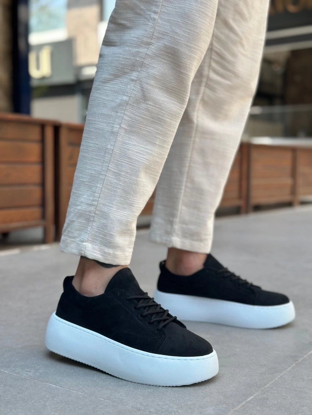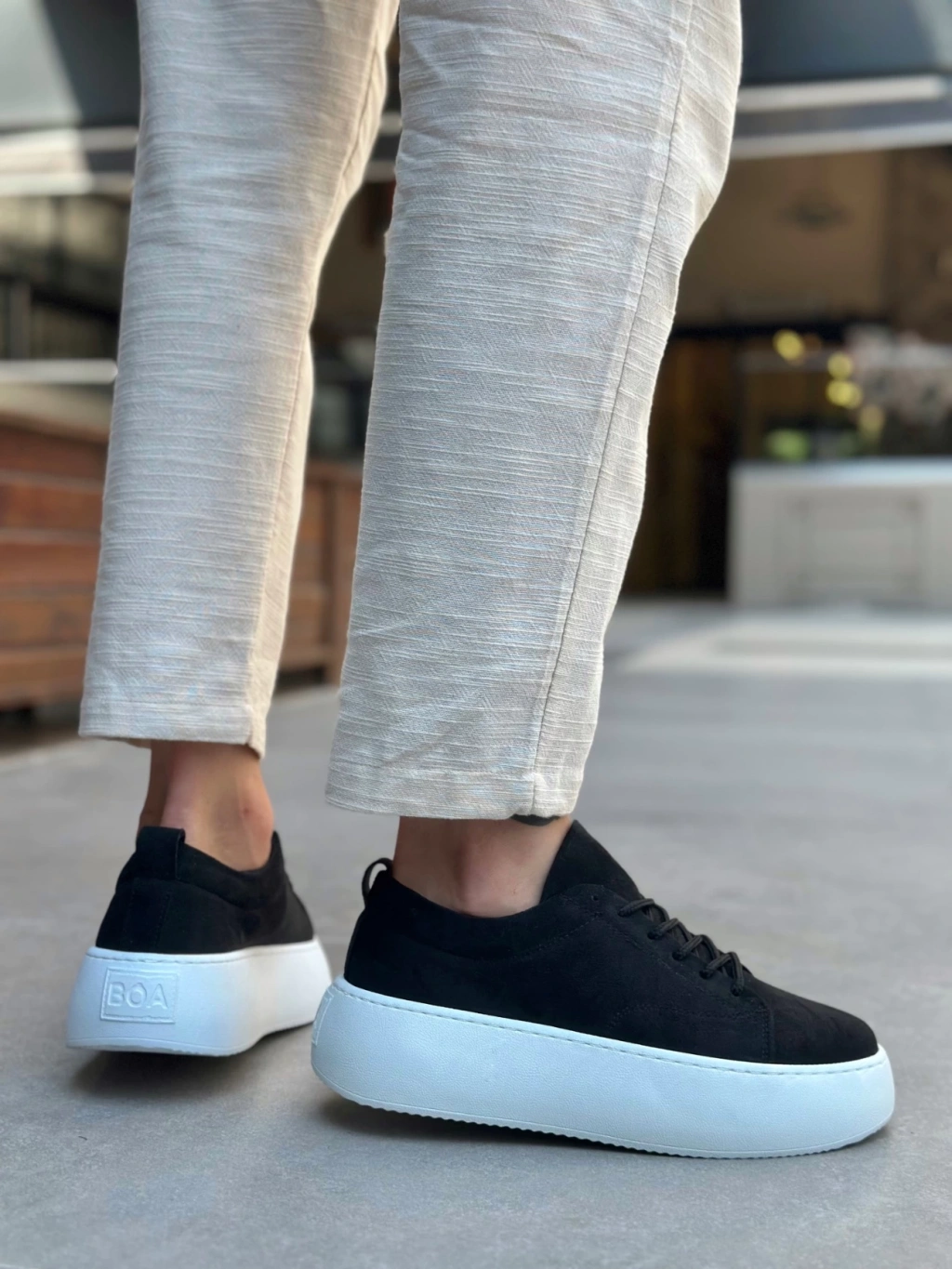 BA0423 BOA Kalın Yüksek Taban Siyah Bağcıklı Spor Erkek Ayakkabı