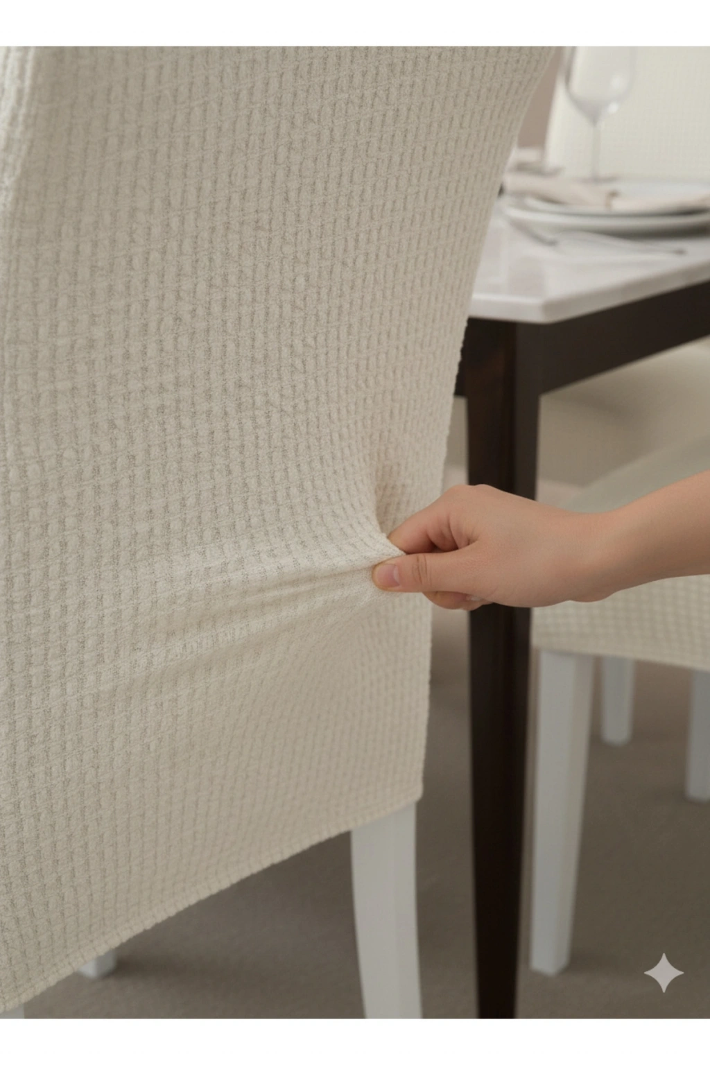 Likralı 6'lı Sandalye Örtüsü Krem Esnek Kumaş Krem