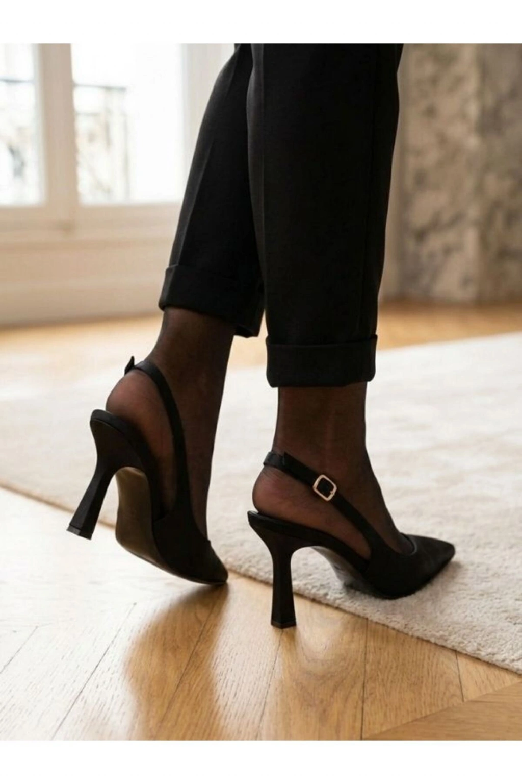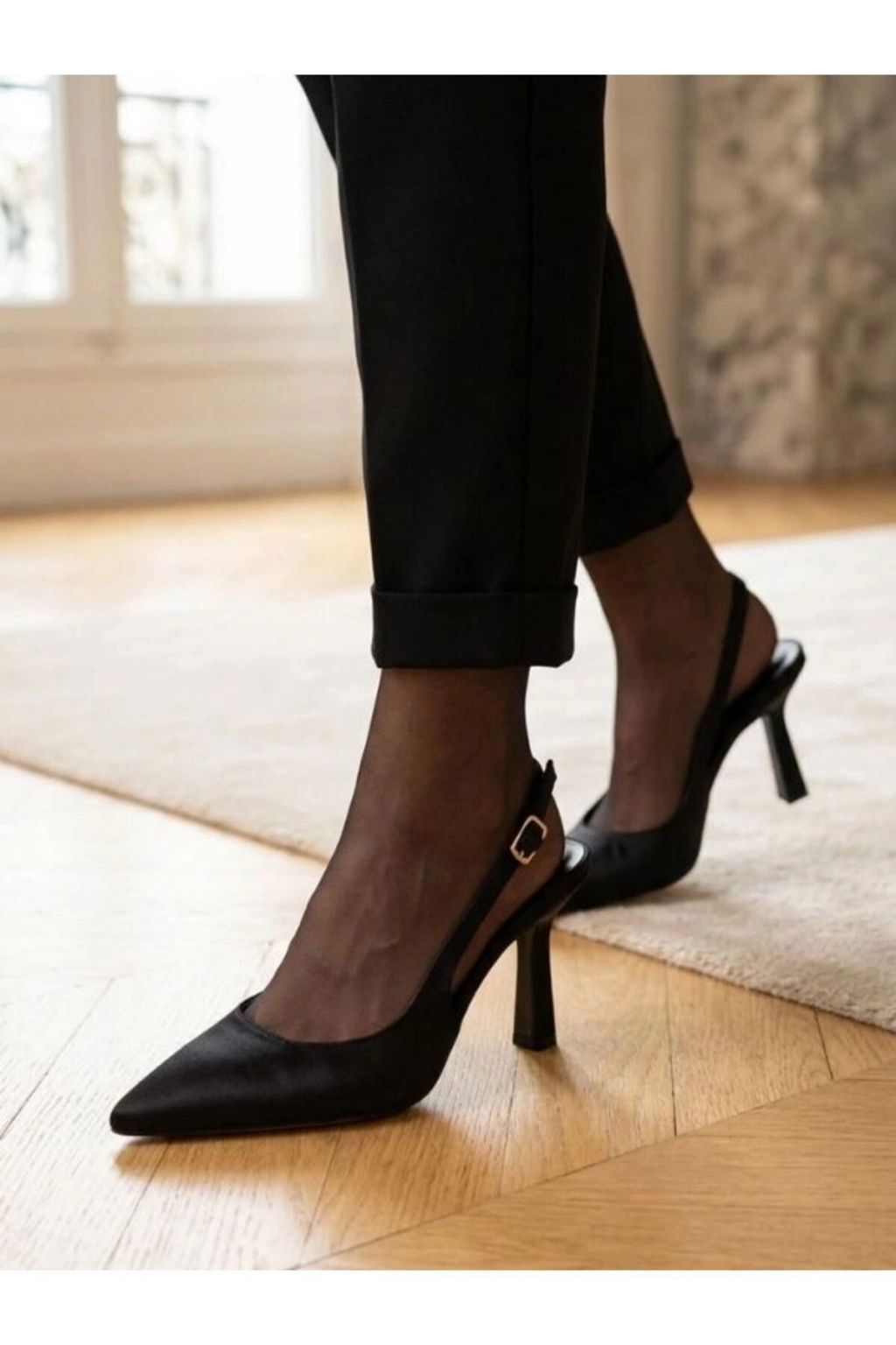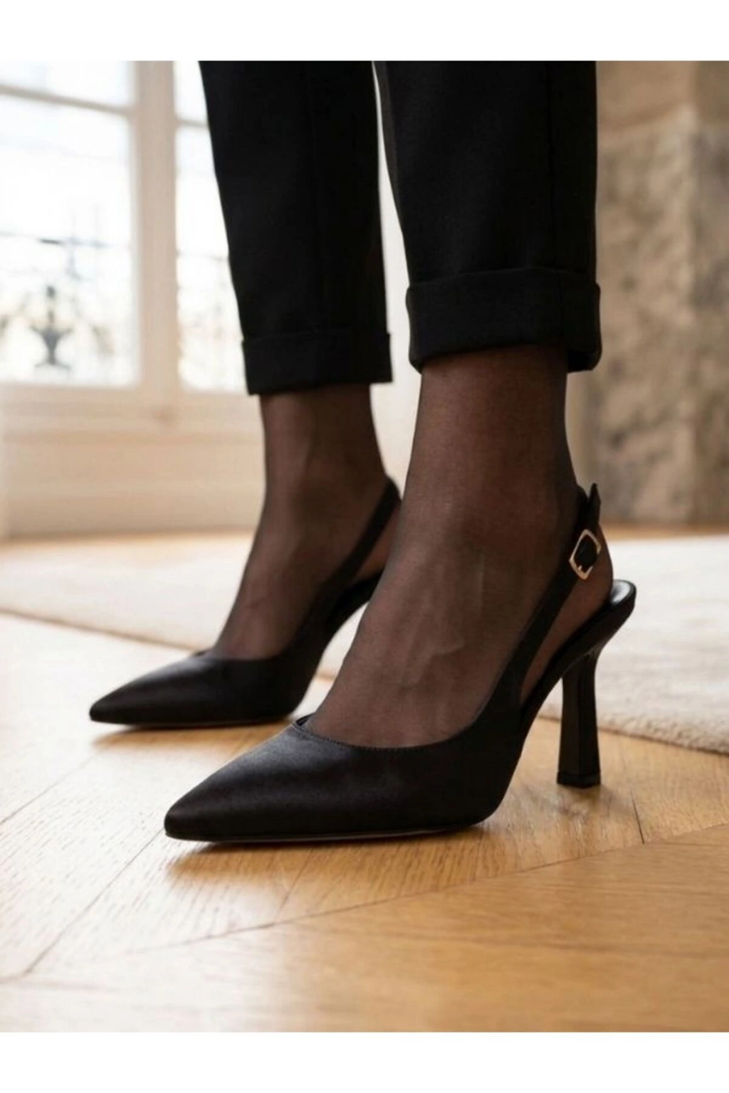 - Saten materyali ile şıklığı ve zarafeti bir arada sunar.; - Sivri burun tasarımı, modern ve sofistike bir görünüm sağlar.; - Arkası bantlı yapısı sayesinde ayağa mükemmel uyum ve rahatlık sunar.; - Topuğu açık tasarımı ile yaz aylarında ferahlık hissi verir.; - Günlük kullanım için ideal, rahat ve şık bir seçenek.;
