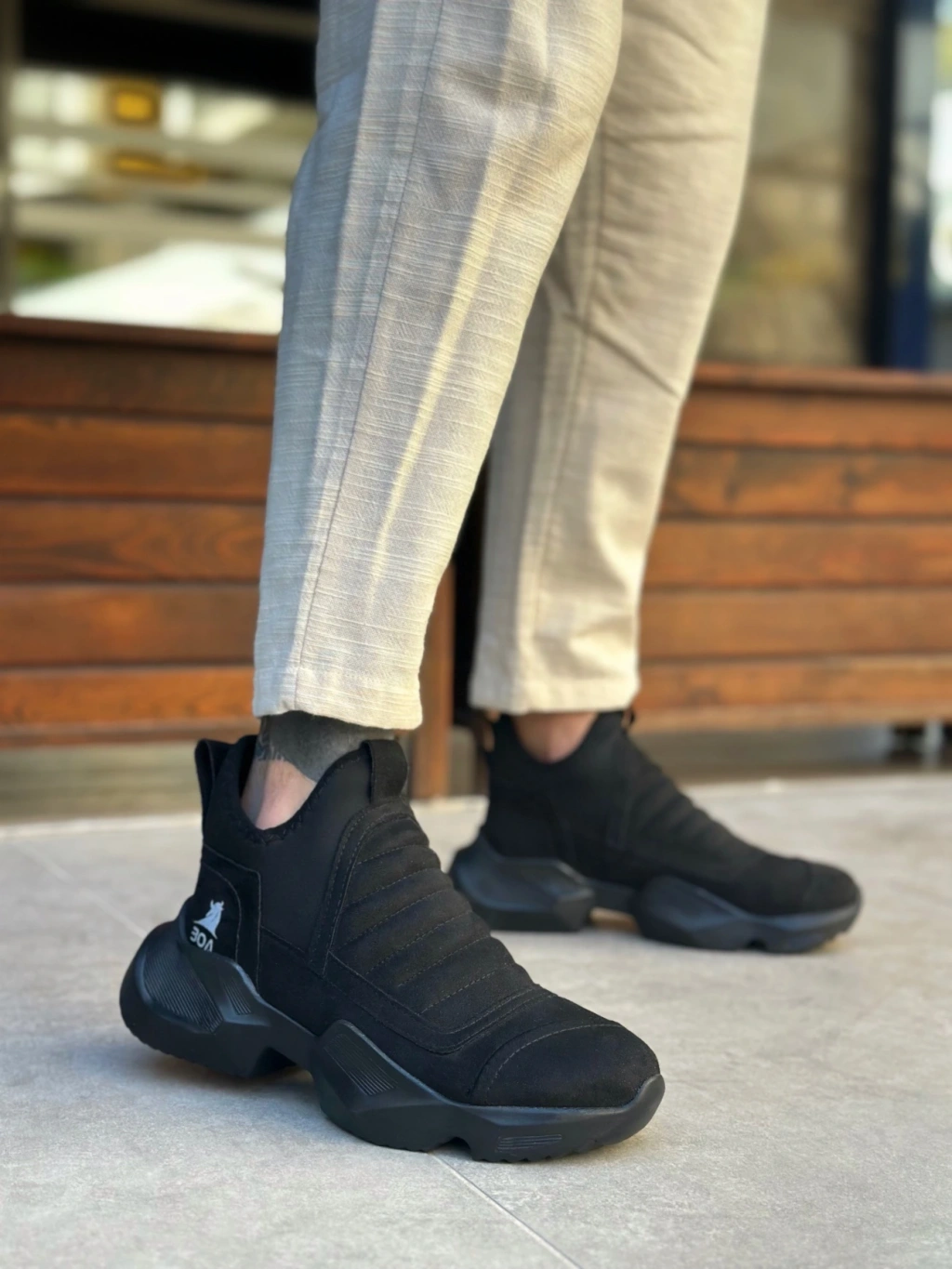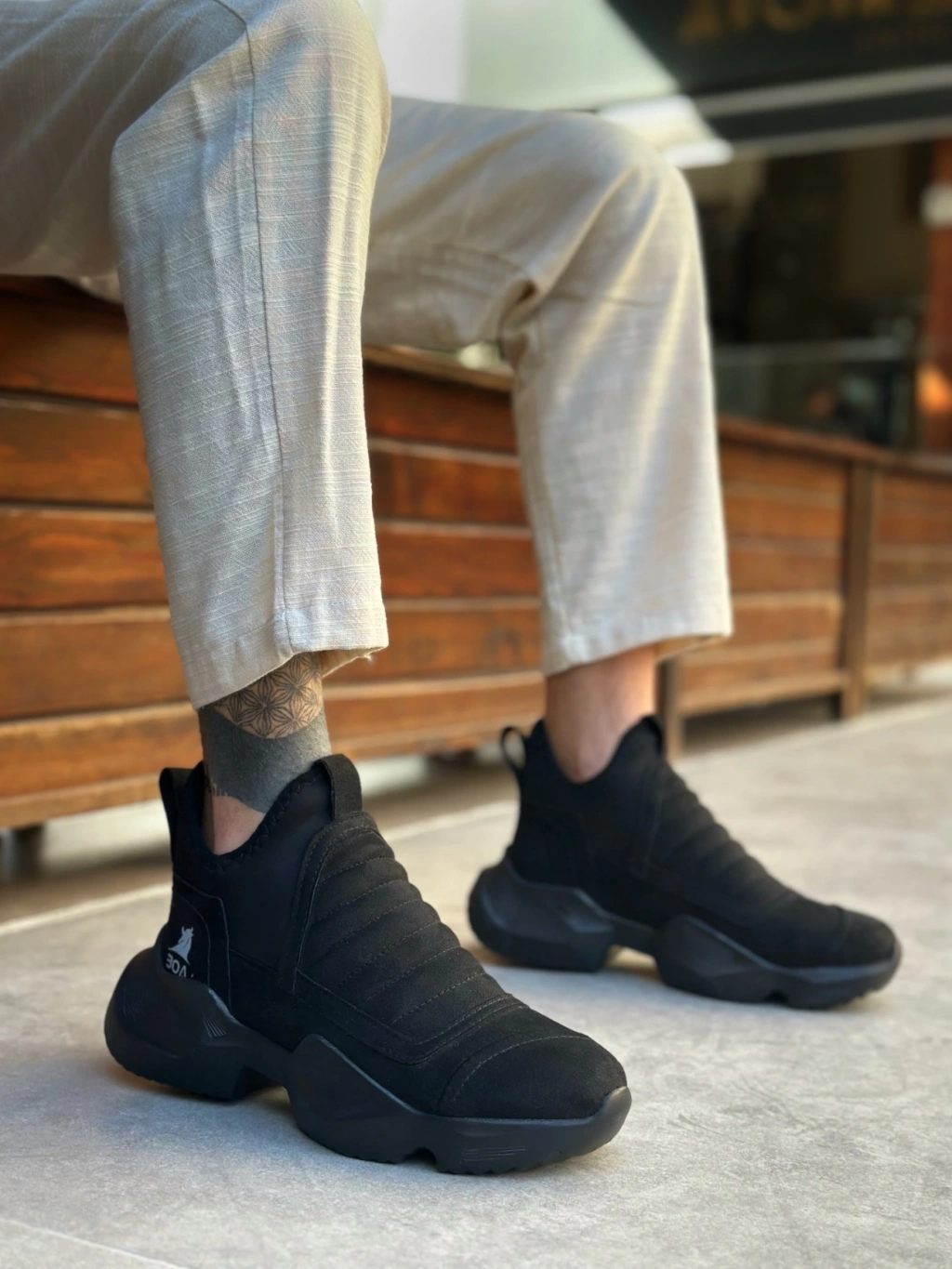 Ba0401 Bağcıksız Rahat Yüksek Siyah Taban Siyah Süet Erkek Spor Yarım Bilek Bot