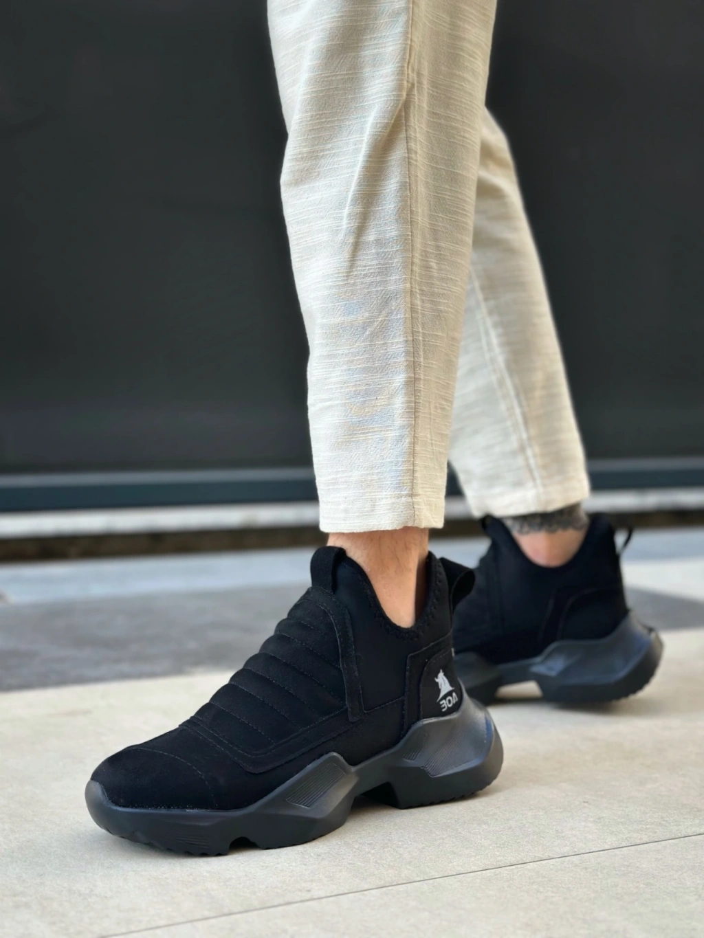 BA0401 Bağcıksız Rahat Yüksek Taban Siyah Erkek Spor Yarım Bilek Bot