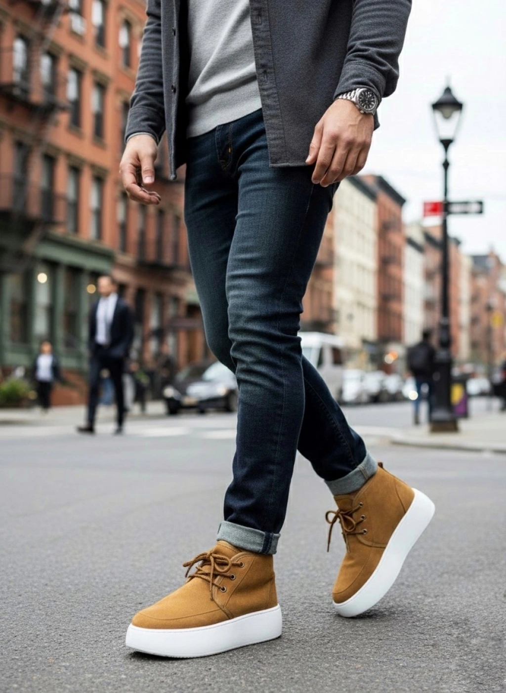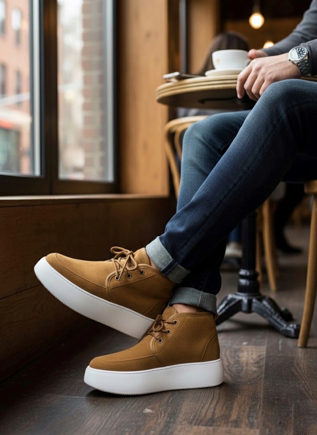BA0713 Bağcıklı Süet Bej Yüksek Taban Erkek Tarz Spor Bot