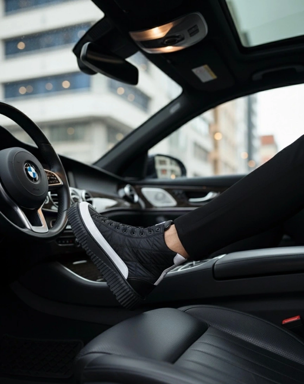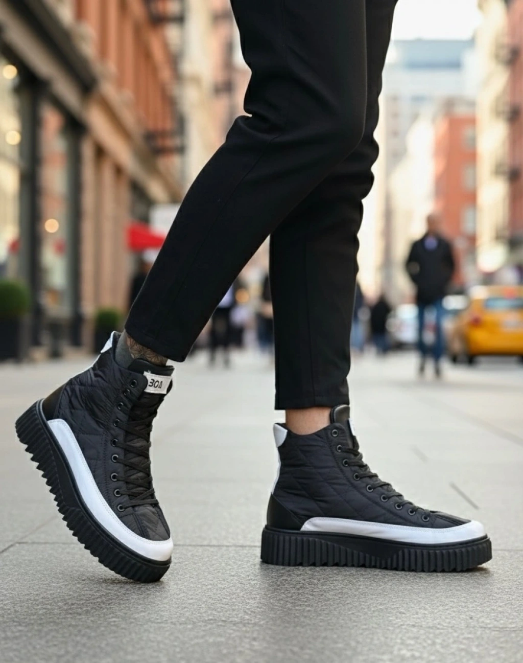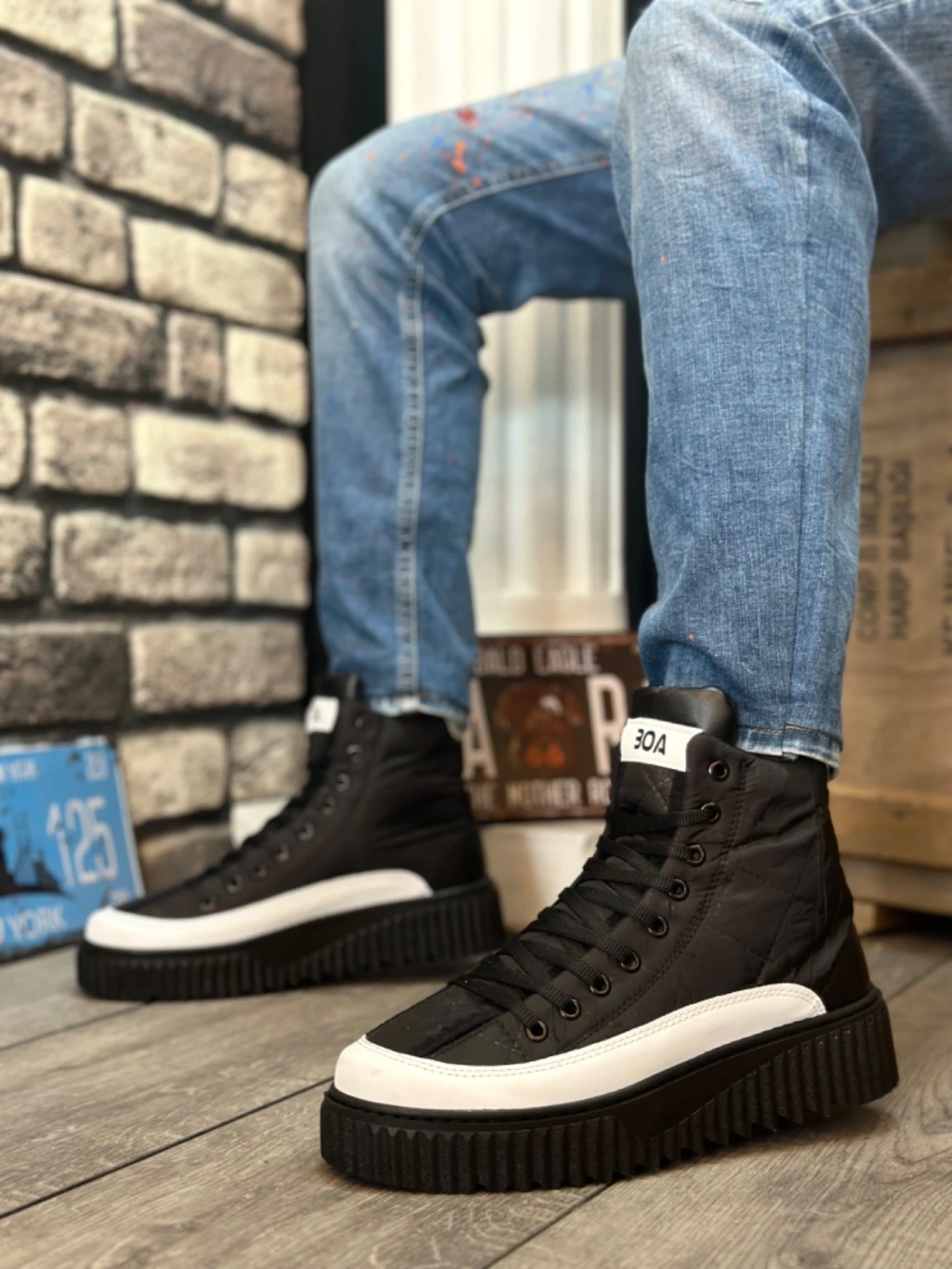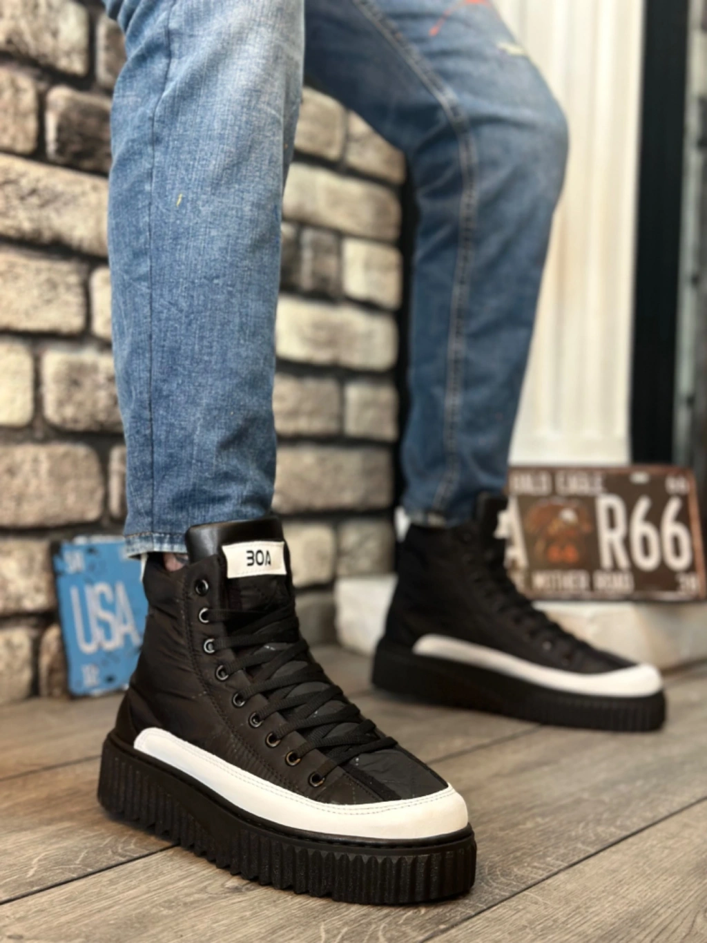 Ba0811 Boa Yüksek Taban Siyah Paraşüt Kumaş Beyaz Cilt Detaylı Yarım Bilek Spor Bot